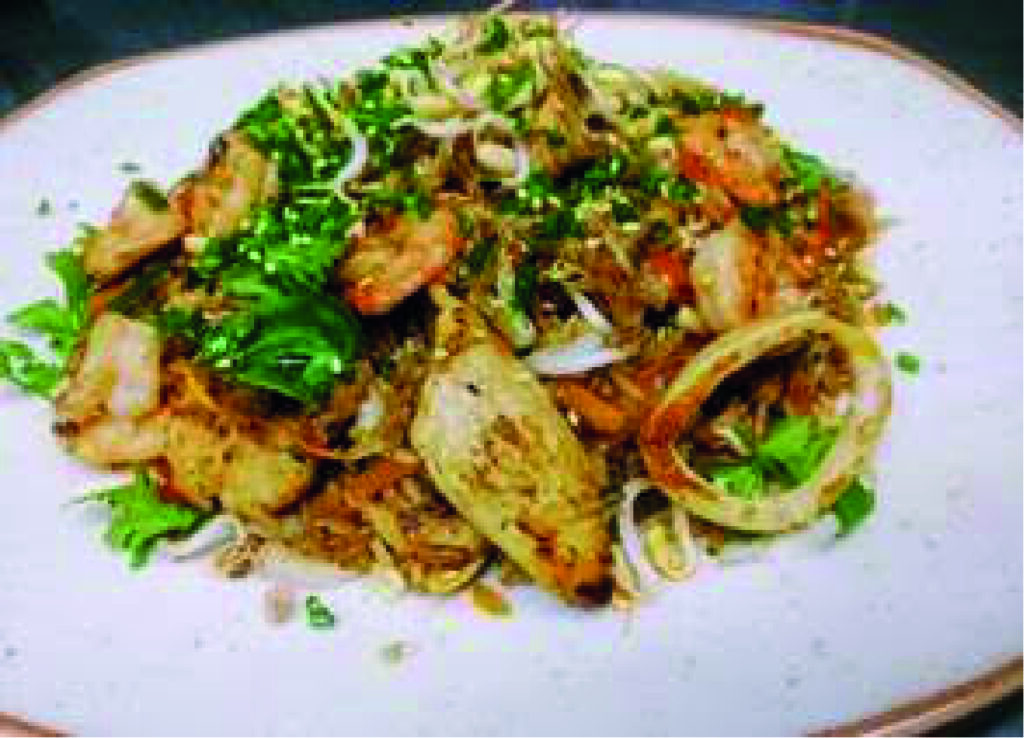 Arroz frito al wok, vegetales, pollo, camarón, calamar