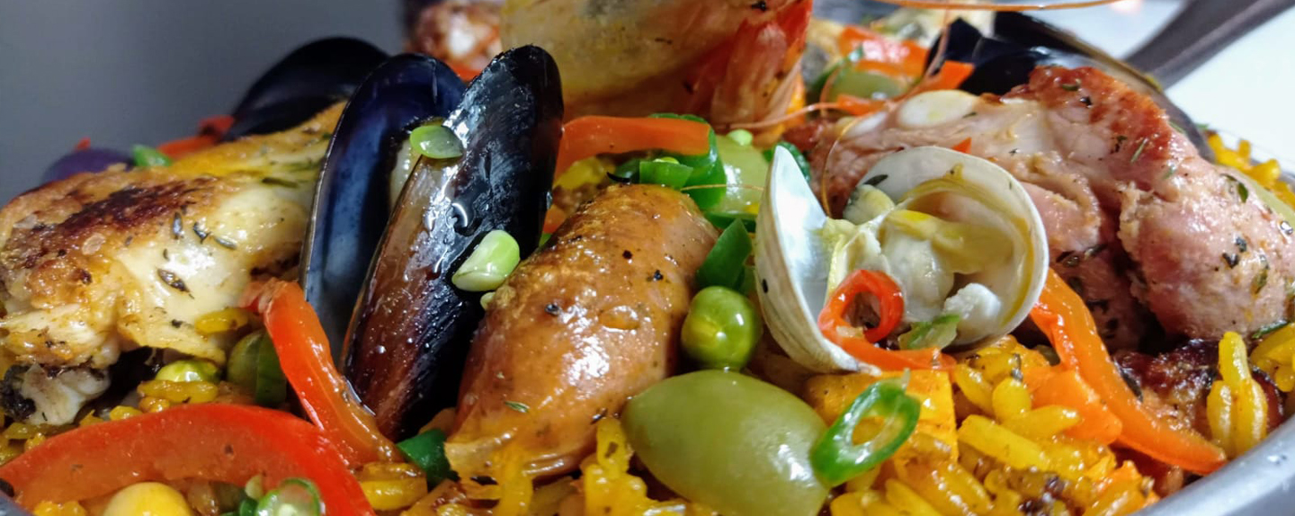 Paella; Langostinos, camarones, calamar, langostino, mejillones, almejas, filete de pescado,